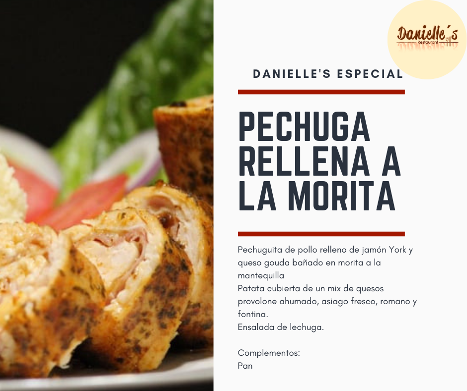 Pechuguita de pollo relleno de jamón York y queso gouda bañado en morita a la mantequilla
